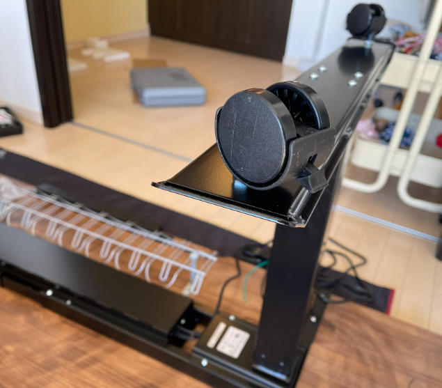 <デスクは重たくなってしまうので、設置してから移動しやすいようにキャスターを取り付けました>