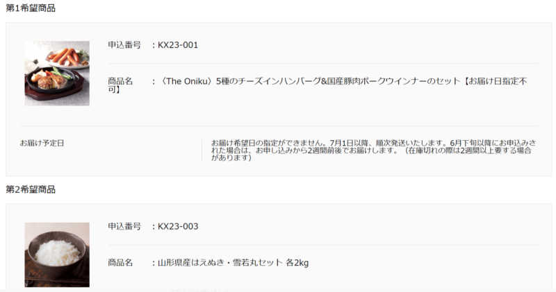 カタログギフトの一番最初に紹介されている商品(第一希望)お米(第二希望)に決めました!