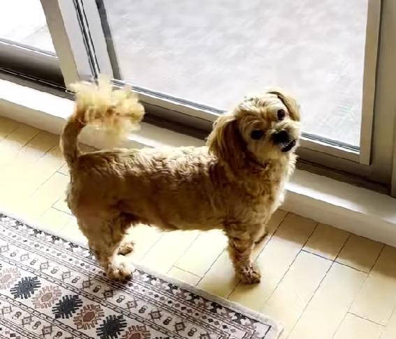 愛犬フーパは日光浴が好きで、どれだけ暑くてもベランダに出たいようです。