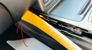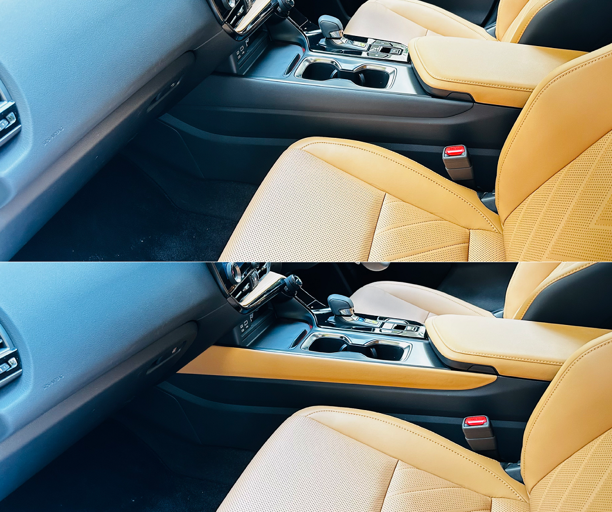 愛車、新型NXの内装色はヘーゼルという色なのですが、助手席側のニーパッドとグローブボックスの色はダッシュボードと同じ黒なんです。
